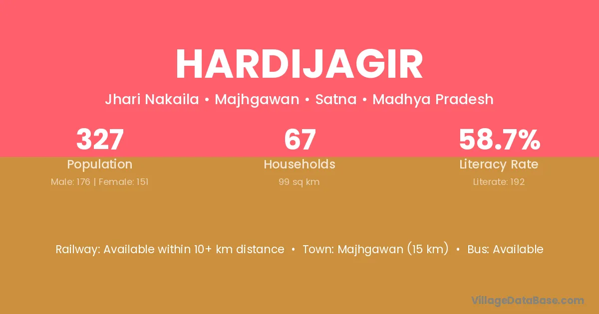 Majhgawan (15 km) is the nearest town to Hardijagir village for major economic activities and is located approximately 15 km away.