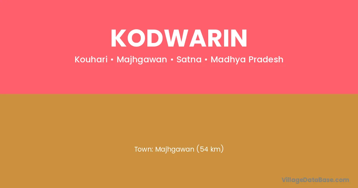 Majhgawan (54 km) is the nearest town to Kodwarin village for major economic activities and is located approximately 54 km away.