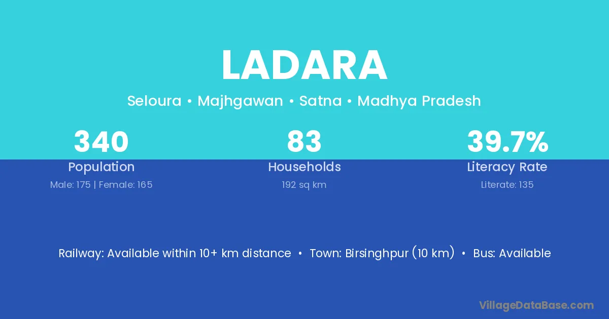 Birsinghpur (10 km) is the nearest town to Ladara village for major economic activities and is located approximately 10 km away.