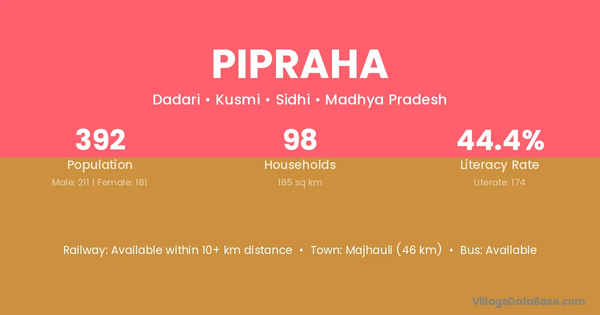 Majhgawan (18 km) is the nearest town to Pipraha village for major economic activities and is located approximately 18 km away.