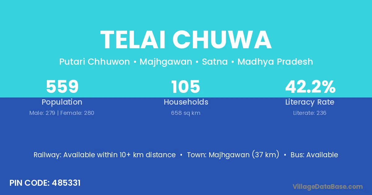 Majhgawan (37 km) is the nearest town to Telai Chuwa village for major economic activities and is located approximately 37 km away.