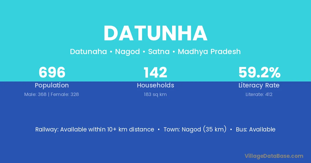 Nagod (35 km) is the nearest town to Datunha village for major economic activities and is located approximately 35 km away.