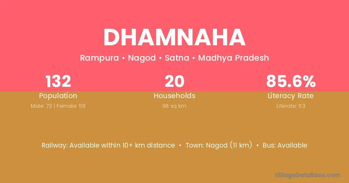 Nagod (11 km) is the nearest town to Dhamnaha village for major economic activities and is located approximately 11 km away.