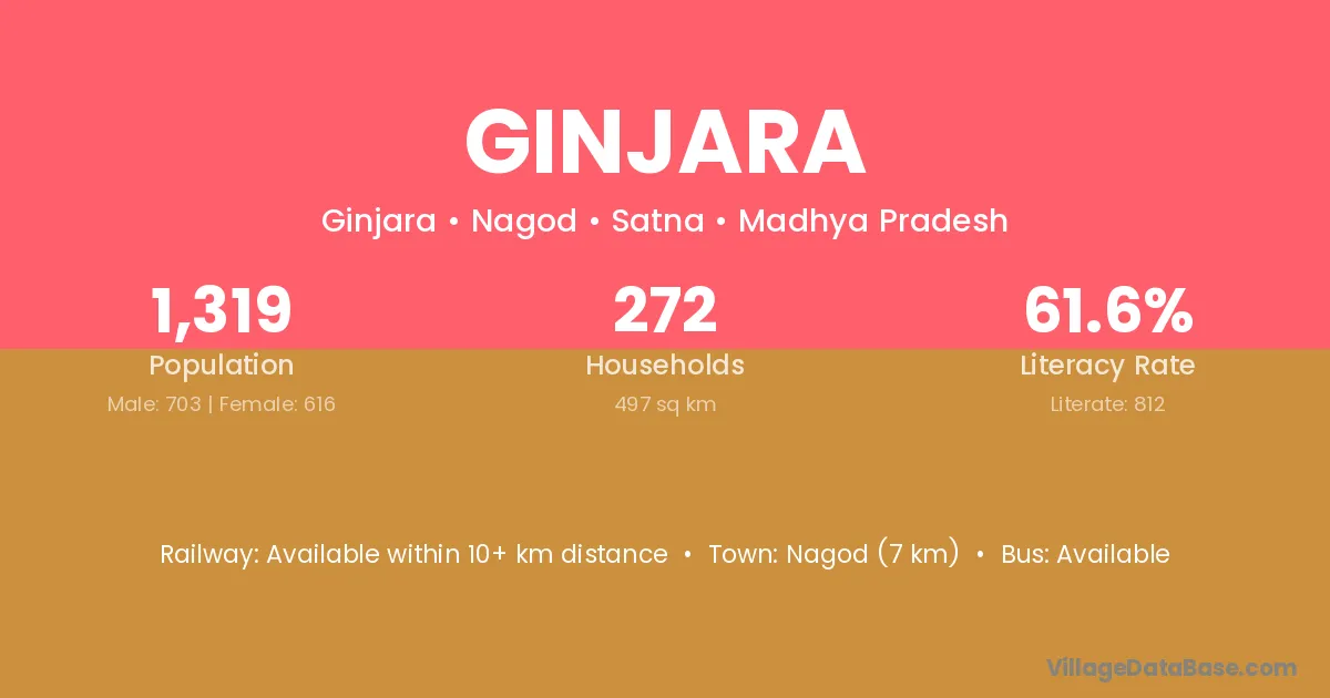 Nagod (7 km) is the nearest town to Ginjara village for major economic activities and is located approximately 7 km away.