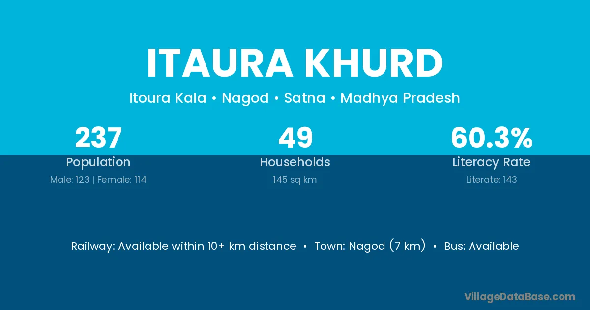 Nagod (7 km) is the nearest town to Itaura Khurd village for major economic activities and is located approximately 7 km away.