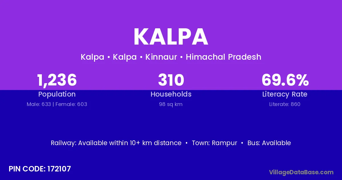 Devendra Nagar (10 km) is the nearest town to Kalpa village for major economic activities and is located approximately 10 km away.