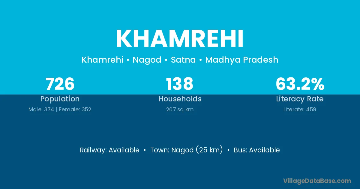 Nagod (25 km) is the nearest town to Khamrehi village for major economic activities and is located approximately 25 km away.