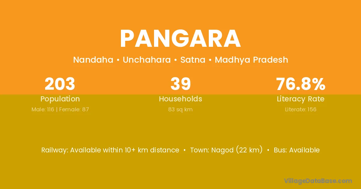 Nagod (18 km) is the nearest town to Pangara village for major economic activities and is located approximately 18 km away.