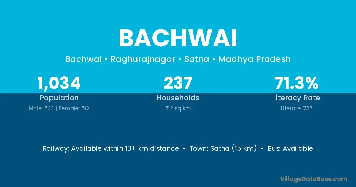 Satna (15 km) is the nearest town to Bachwai village for major economic activities and is located approximately 15 km away.