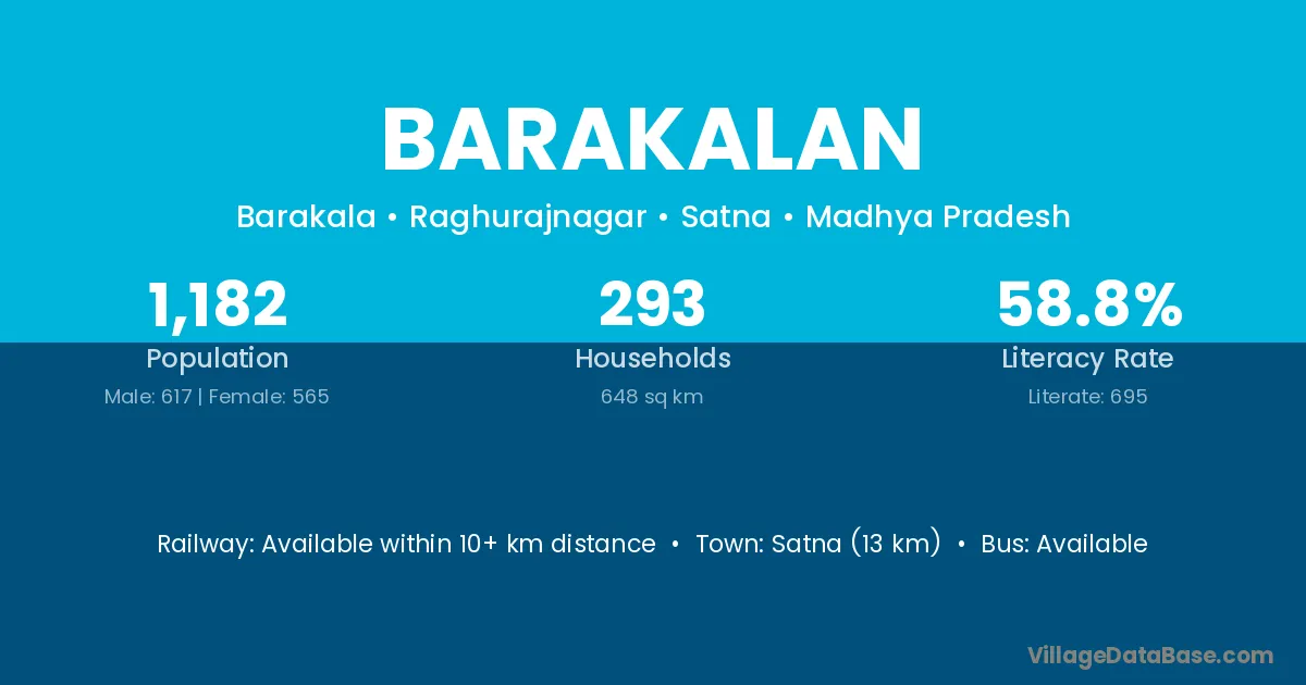 Satna (13 km) is the nearest town to Barakalan village for major economic activities and is located approximately 13 km away.