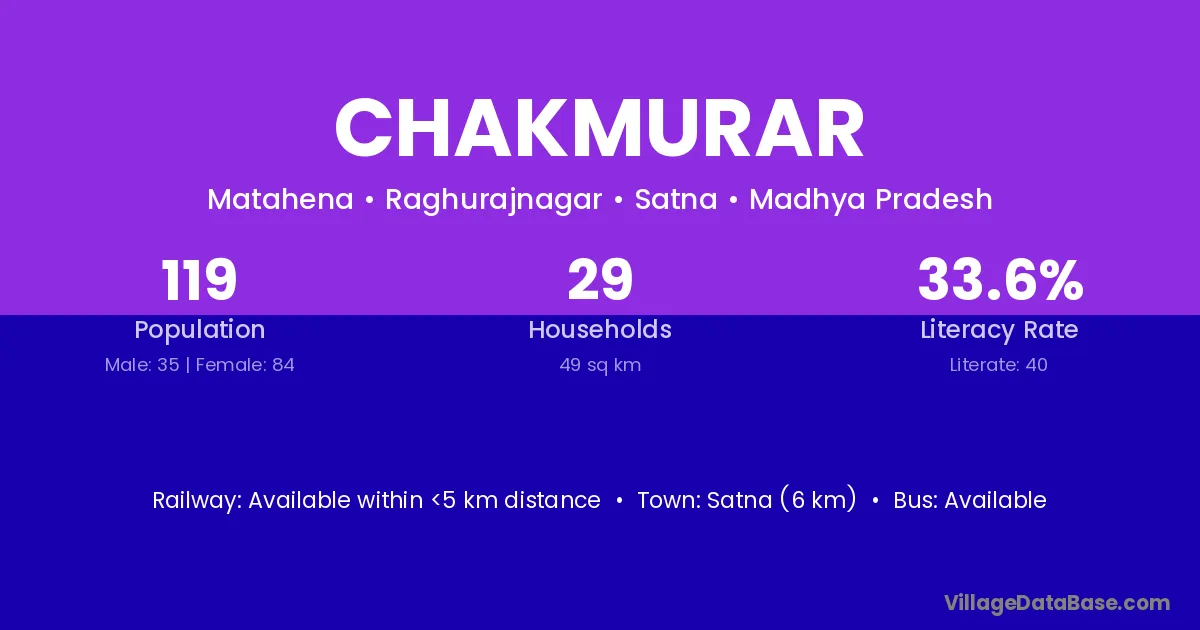 Satna (6 km) is the nearest town to Chakmurar village for major economic activities and is located approximately 6 km away.