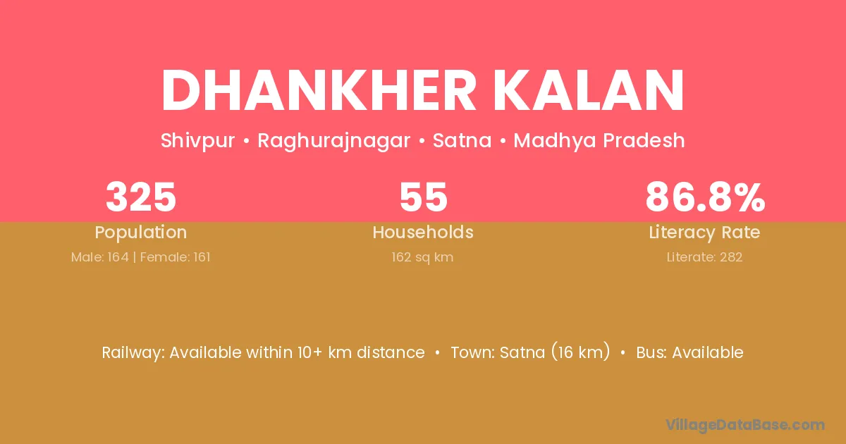 Satna (16 km) is the nearest town to Dhankher Kalan village for major economic activities and is located approximately 16 km away.