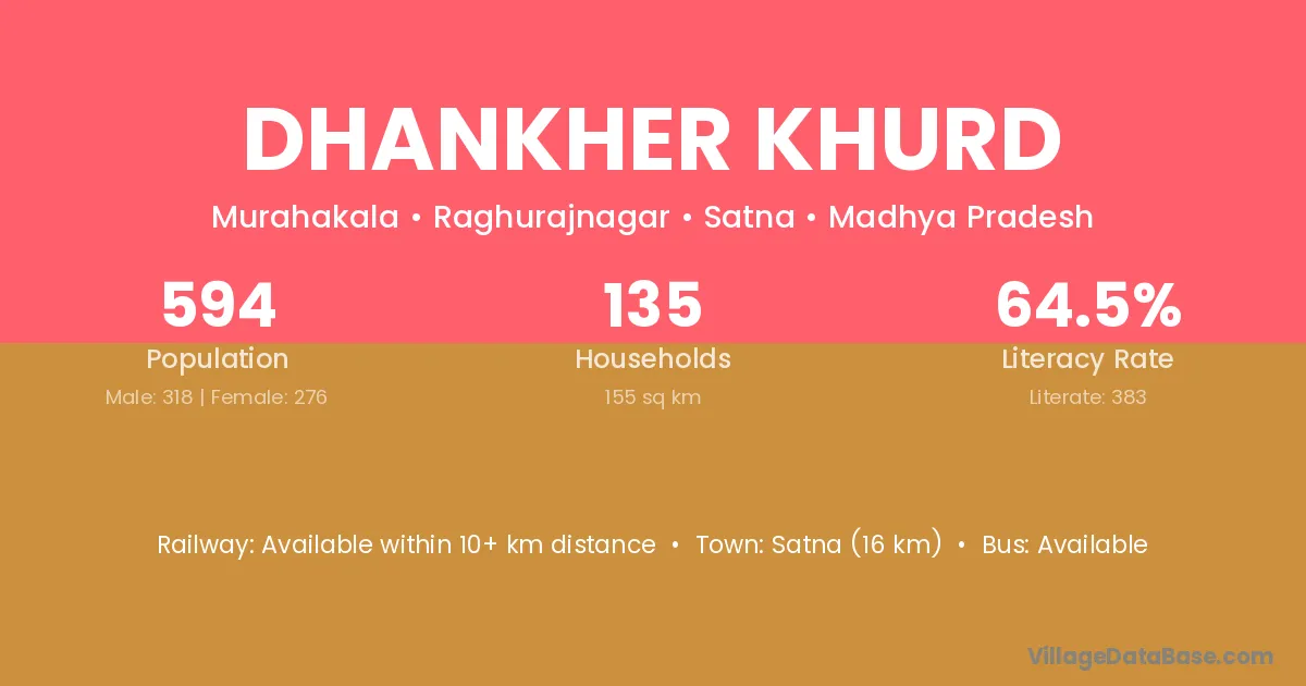 Satna (16 km) is the nearest town to Dhankher Khurd village for major economic activities and is located approximately 16 km away.