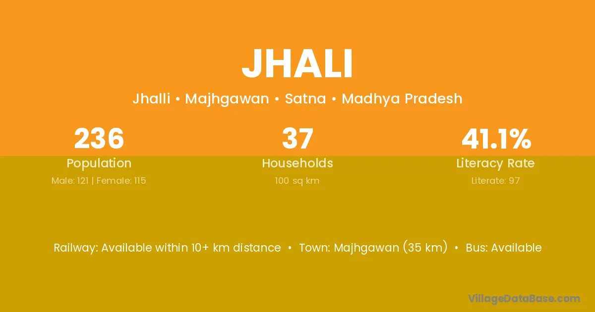 Satna (32 km) is the nearest town to Jhali village for major economic activities and is located approximately 32 km away.