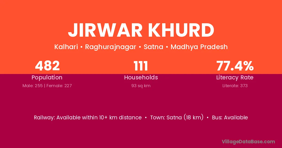 Jirwar Khurd village has a total population of 482 people, of which 255 are males and 227 are females.