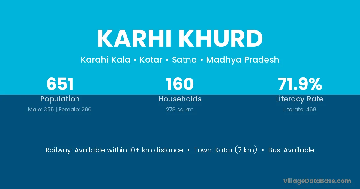 Satna (8 km) is the nearest town to Karhi Khurd village for major economic activities and is located approximately 8 km away.