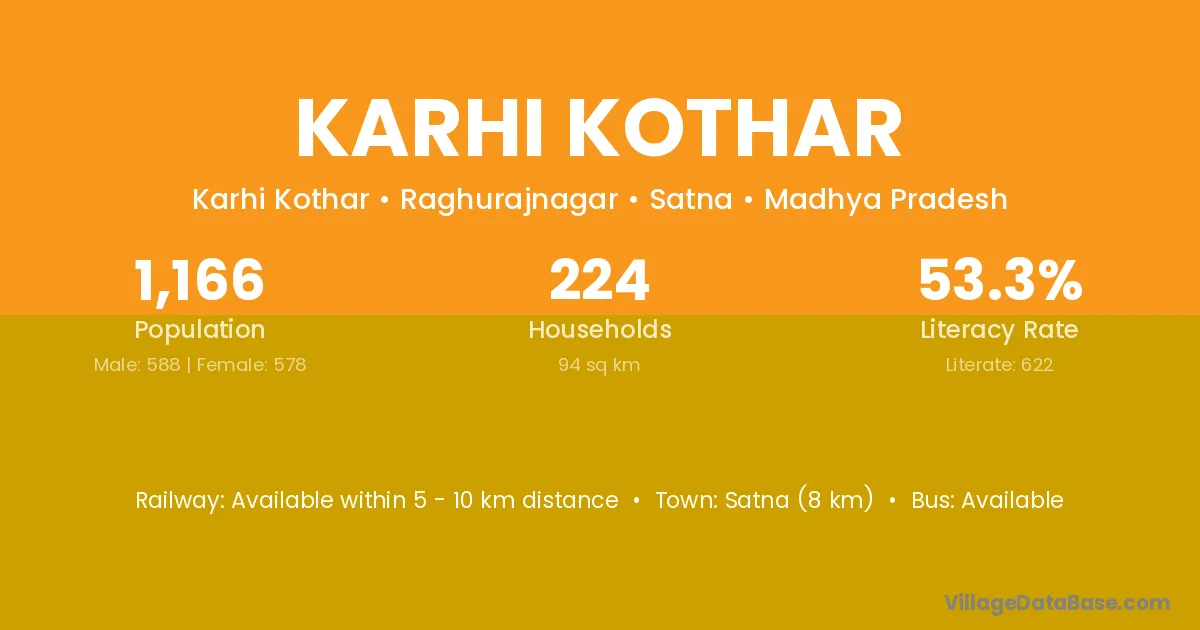 Satna (8 km) is the nearest town to Karhi Kothar village for major economic activities and is located approximately 8 km away.