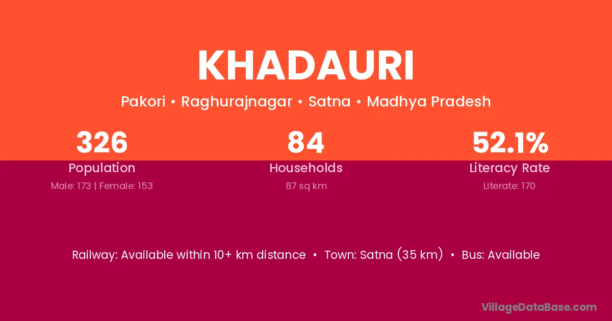 Satna (35 km) is the nearest town to Khadauri village for major economic activities and is located approximately 35 km away.