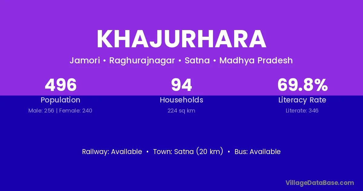 Satna (20 km) is the nearest town to Khajurhara village for major economic activities and is located approximately 20 km away.