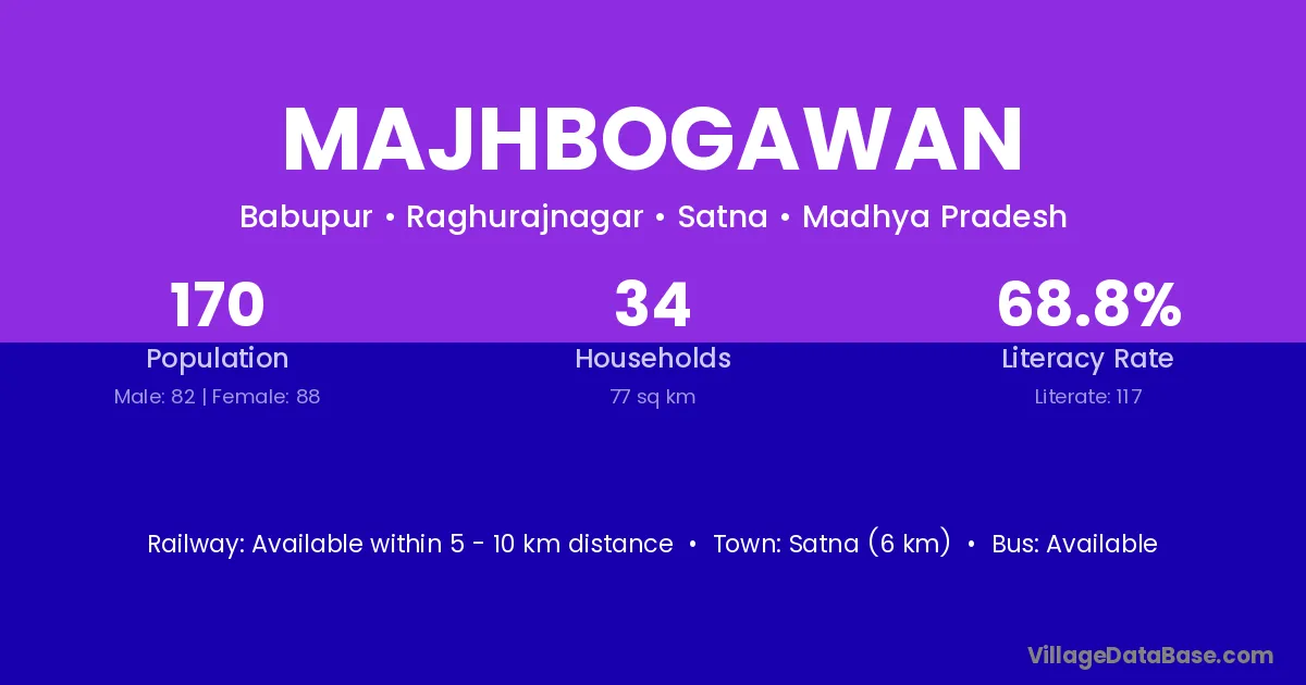 Satna (6 km) is the nearest town to Majhbogawan village for major economic activities and is located approximately 6 km away.