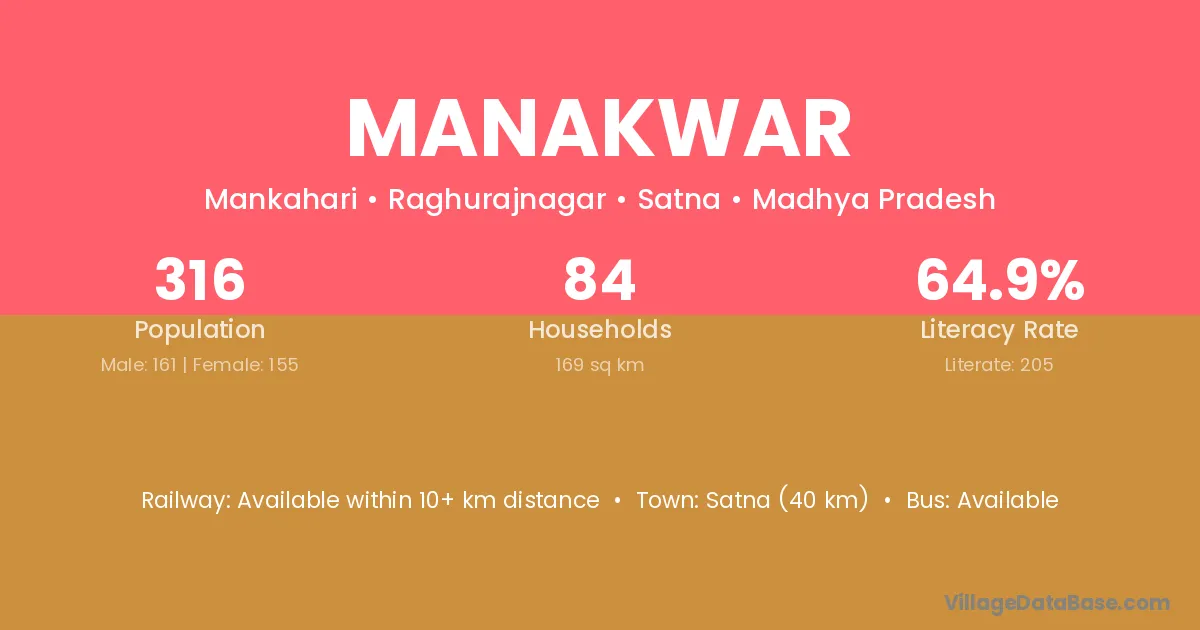 Satna (40 km) is the nearest town to Manakwar village for major economic activities and is located approximately 40 km away.