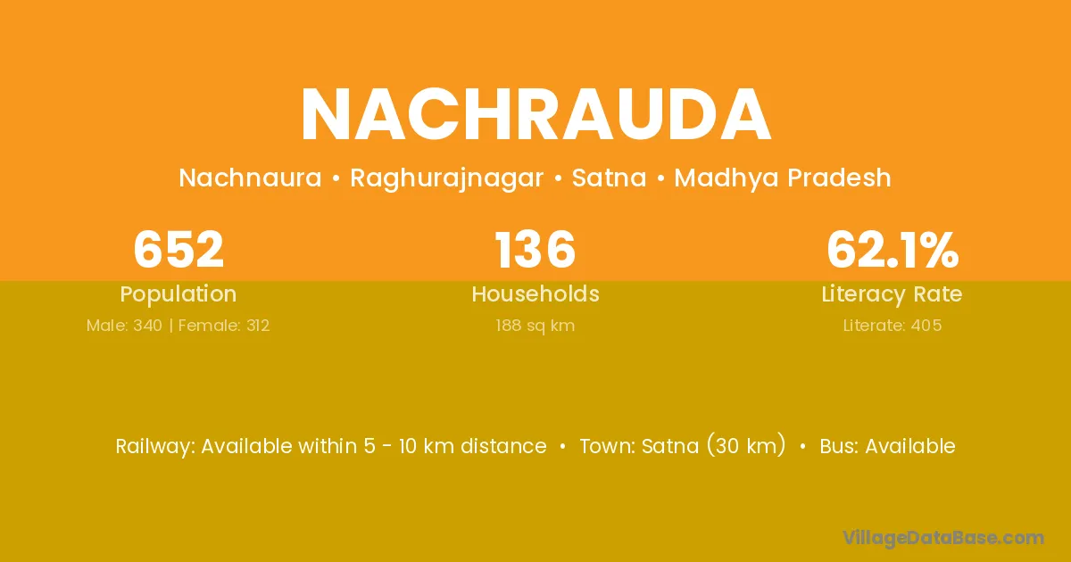 Satna (30 km) is the nearest town to Nachrauda village for major economic activities and is located approximately 30 km away.