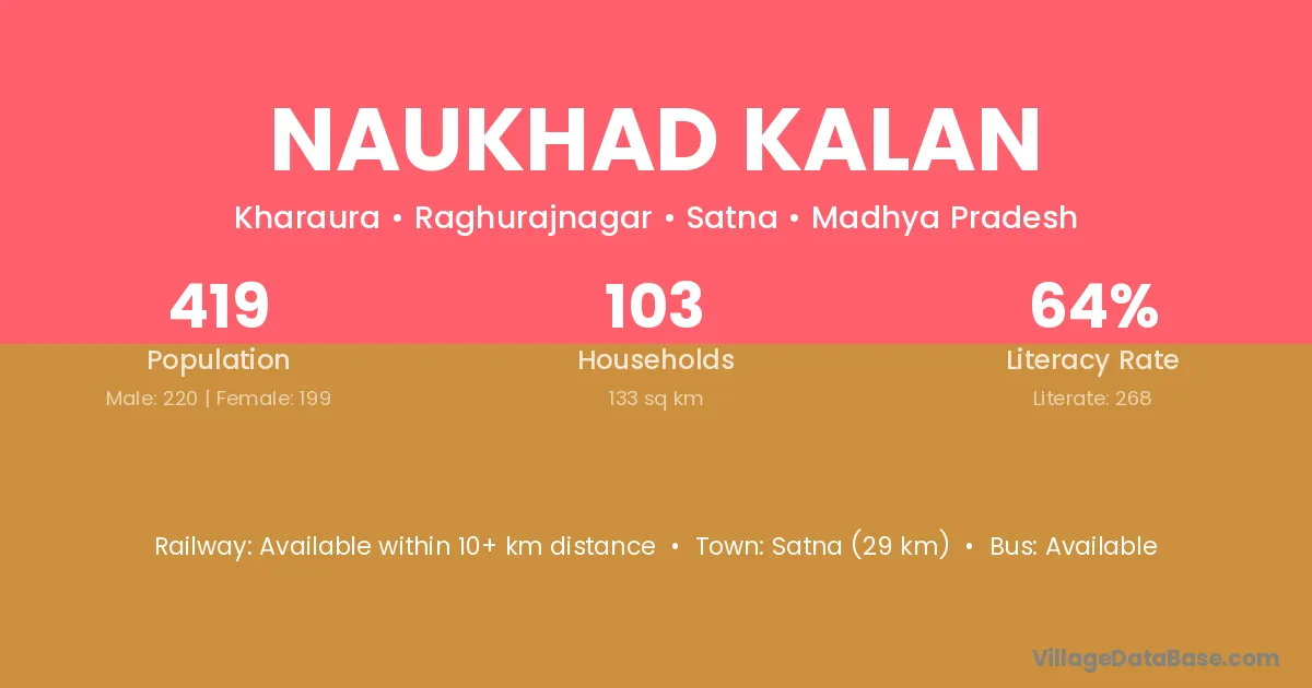 Satna (29 km) is the nearest town to Naukhad Kalan village for major economic activities and is located approximately 29 km away.
