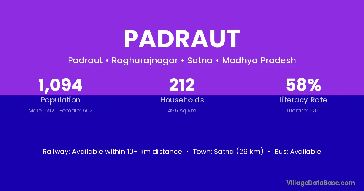 Satna (29 km) is the nearest town to Padraut village for major economic activities and is located approximately 29 km away.