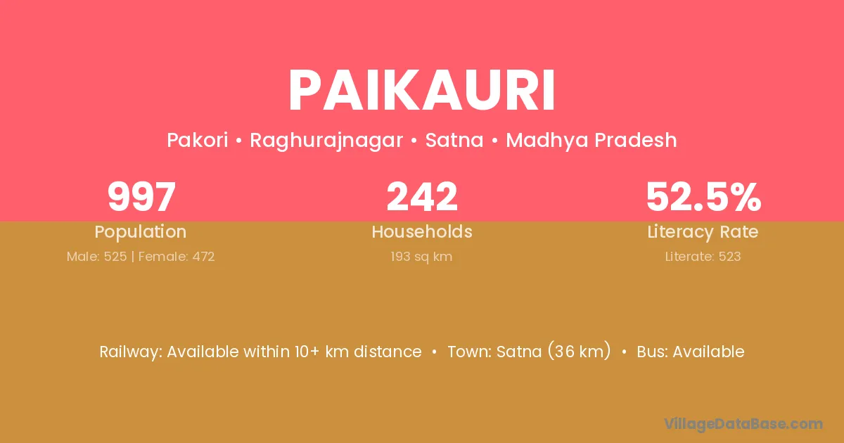 Satna (36 km) is the nearest town to Paikauri village for major economic activities and is located approximately 36 km away.