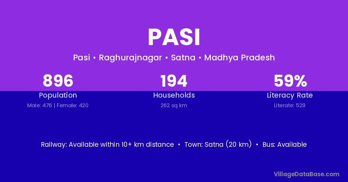 Satna (20 km) is the nearest town to Pasi village for major economic activities and is located approximately 20 km away.