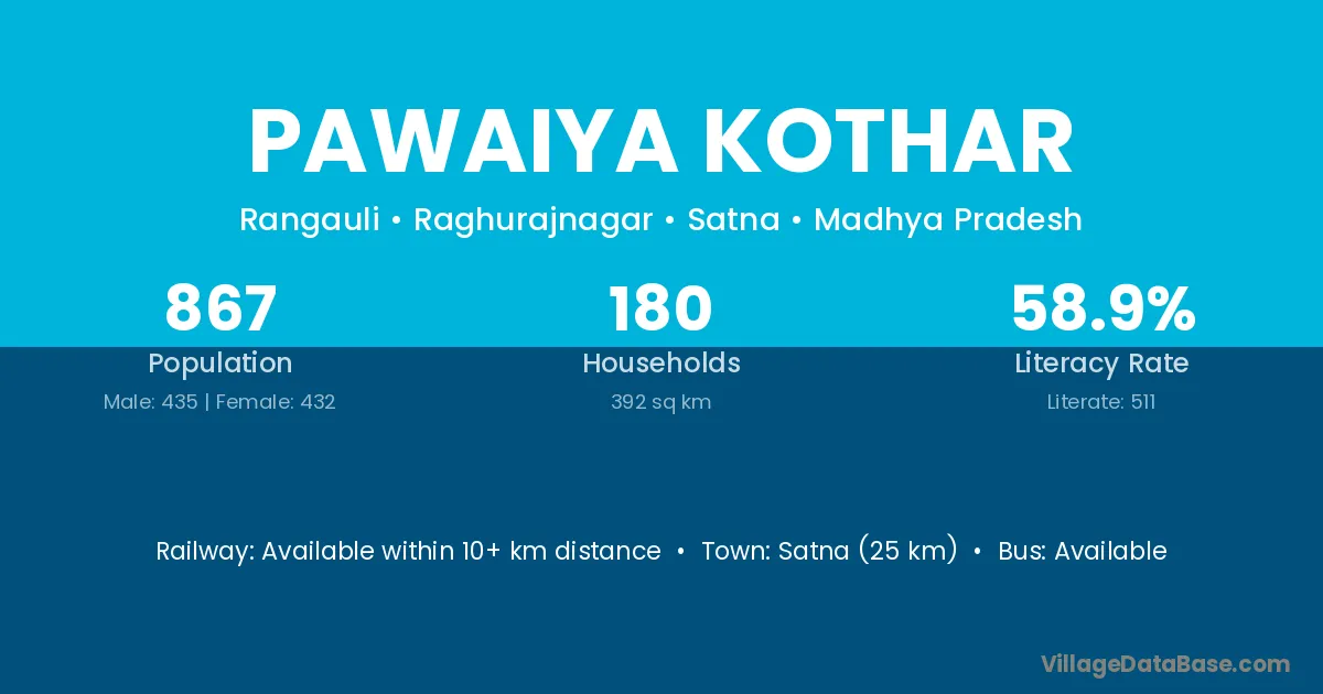 Satna (25 km) is the nearest town to Pawaiya Kothar village for major economic activities and is located approximately 25 km away.