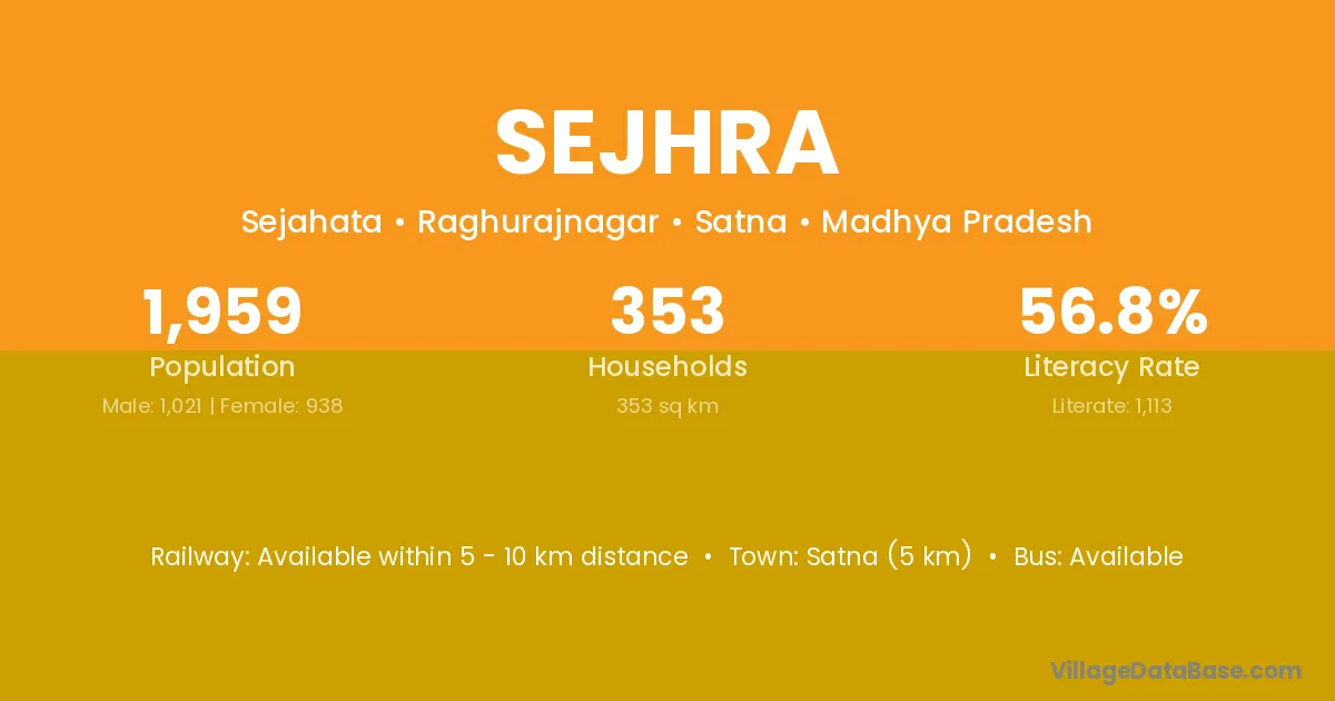 Satna (5 km) is the nearest town to Sejhra village for major economic activities and is located approximately 5 km away.