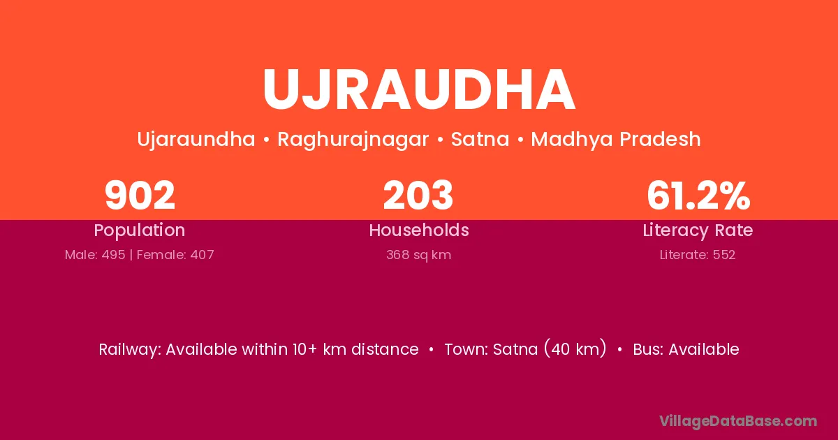 Satna (40 km) is the nearest town to Ujraudha village for major economic activities and is located approximately 40 km away.