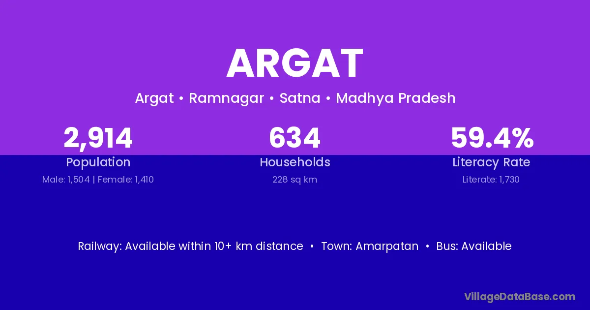 Argat village has a total population of 2,914 people, of which 1,504 are males and 1,410 are females.