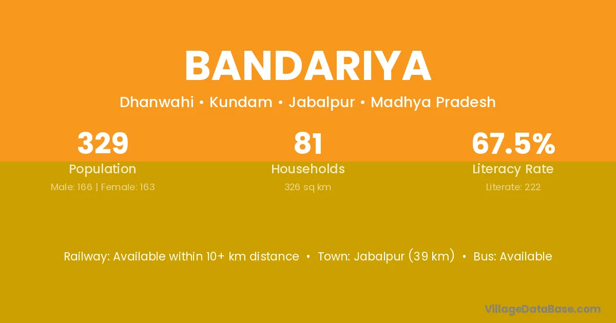 Bandariya village has a total population of 34 people, of which 16 are males and 18 are females.