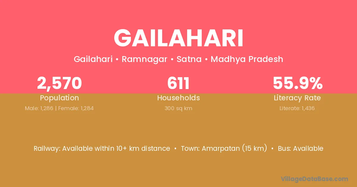 Amarpatan (15 km) is the nearest town to Gailahari village for major economic activities and is located approximately 15 km away.
