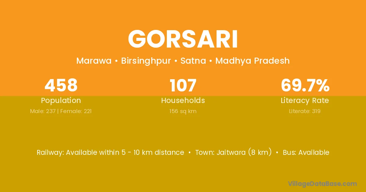 Amarpatan (15 km) is the nearest town to Gorsari village for major economic activities and is located approximately 15 km away.