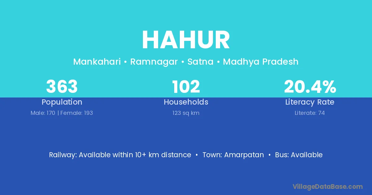 Hahur village has a total population of 363 people, of which 170 are males and 193 are females.