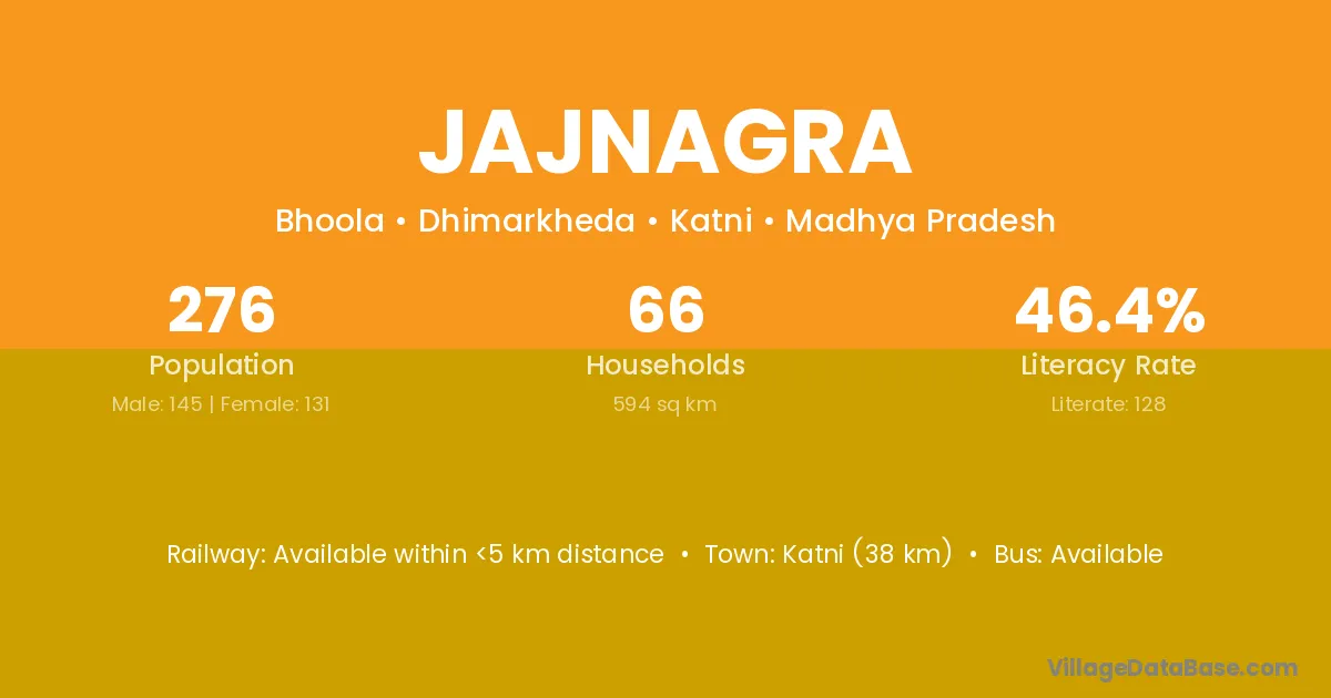 The literacy rate of Jajnagra village is 55.27%. Male literacy stands at 67.29% and female literacy at 41.45%.