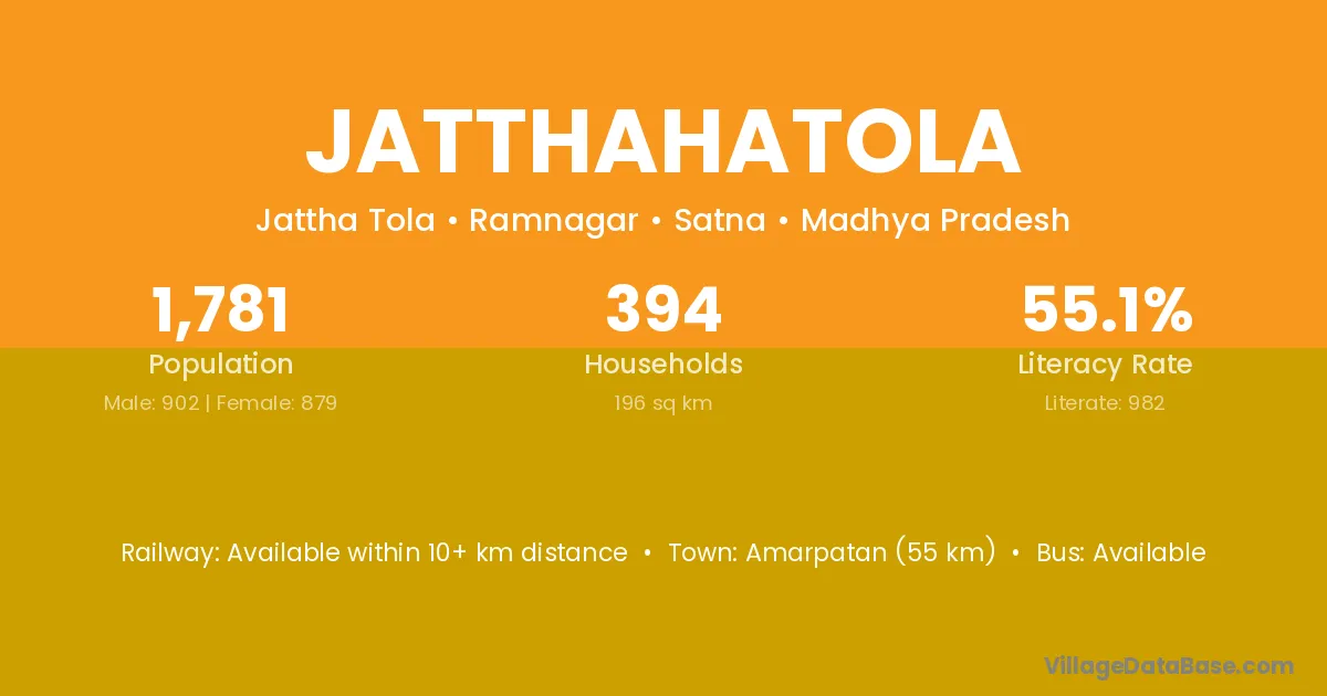 Jatthahatola village has a total population of 1,781 people, of which 902 are males and 879 are females.