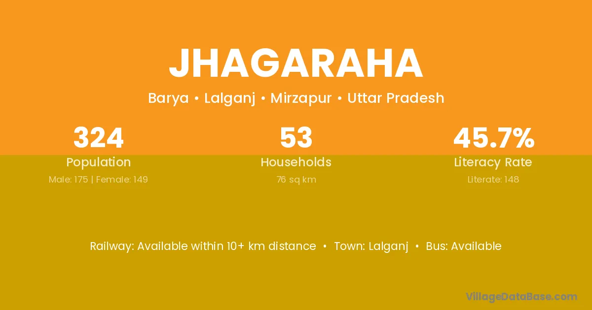 The literacy rate of Jhagaraha village is 53.82%. Male literacy stands at 62.88% and female literacy at 44.62%.