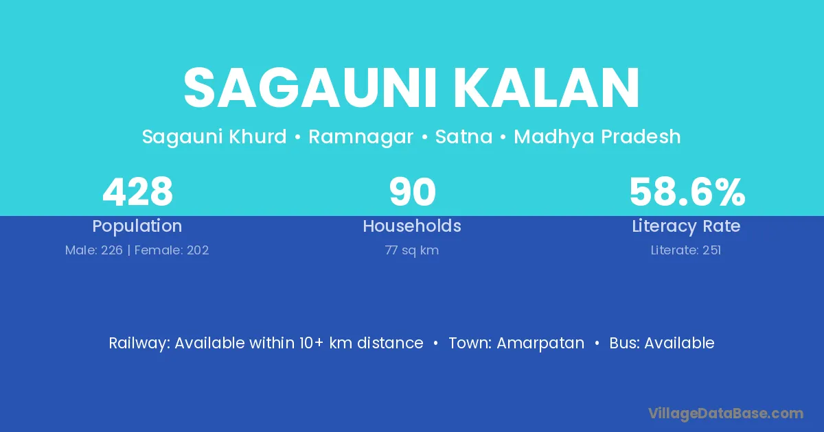 Sagauni Kalan village has a total population of 428 people, of which 226 are males and 202 are females.