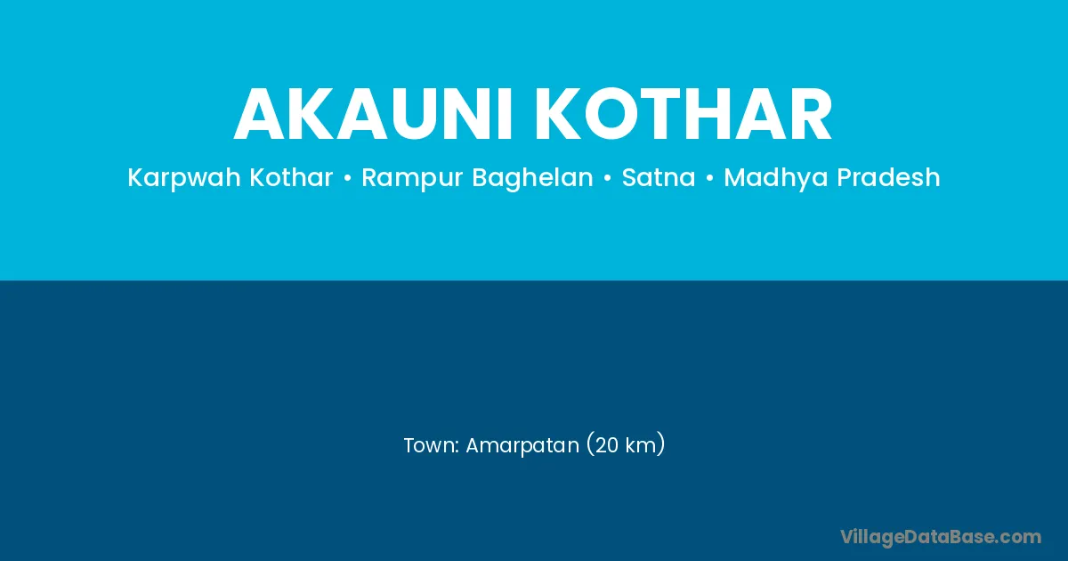 Amarpatan (20 km) is the nearest town to Akauni Kothar village for major economic activities and is located approximately 20 km away.