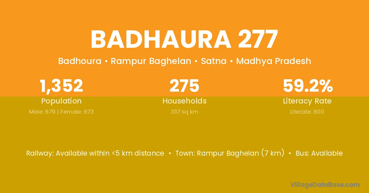 Rampur Baghelan (7 km) is the nearest town to Badhaura 277 village for major economic activities and is located approximately 7 km away.