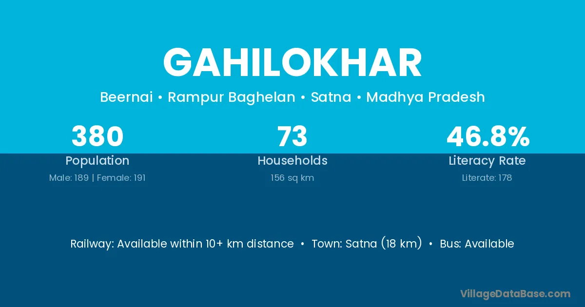 Satna (18 km) is the nearest town to Gahilokhar village for major economic activities and is located approximately 18 km away.