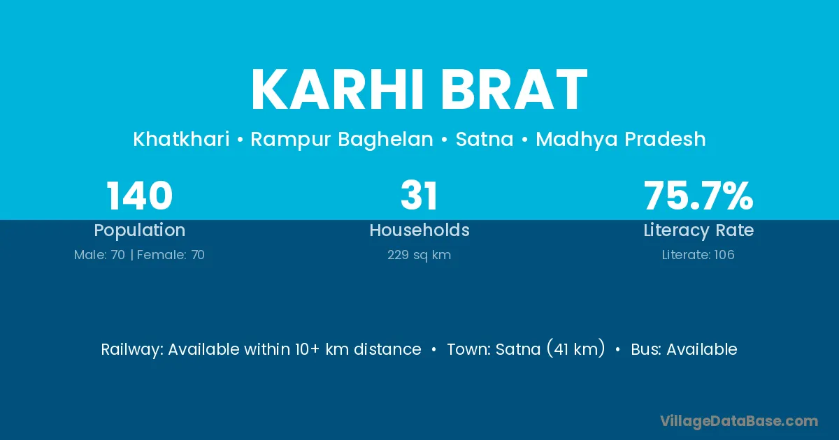 Satna (41 km) is the nearest town to Karhi Brat village for major economic activities and is located approximately 41 km away.