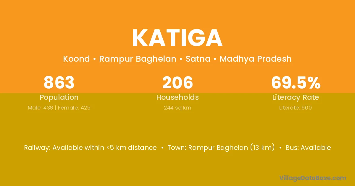 Rampur Baghelan (13 km) is the nearest town to Katiga village for major economic activities and is located approximately 13 km away.