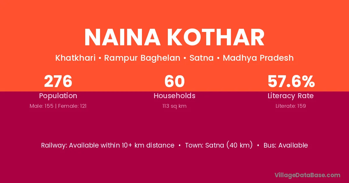 Satna (40 km) is the nearest town to Naina Kothar village for major economic activities and is located approximately 40 km away.