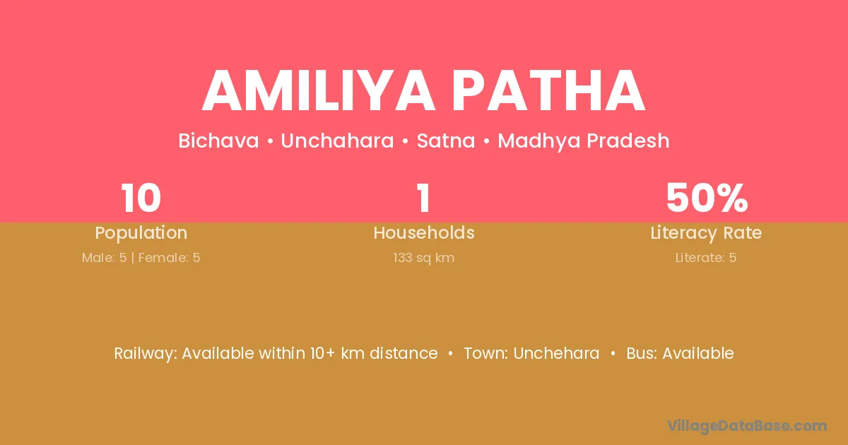 Amiliya Patha village has a total population of 10 people, of which 5 are males and 5 are females.