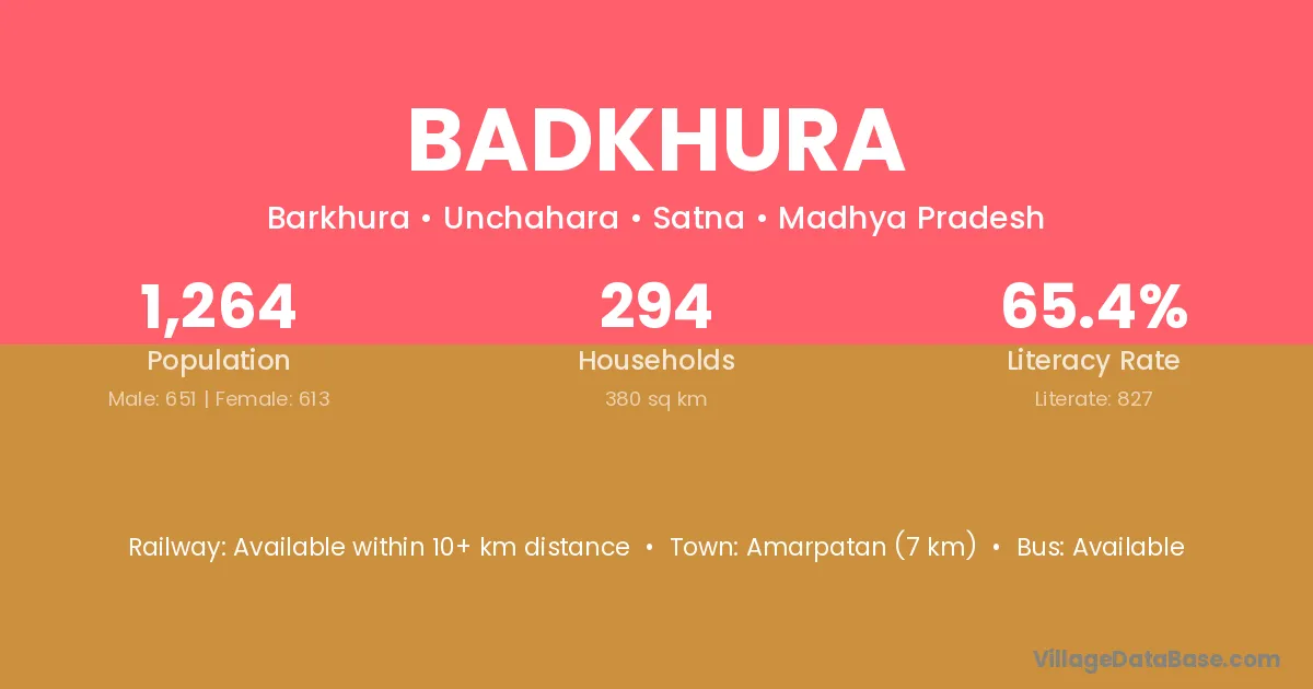 Amarpatan (7 km) is the nearest town to Badkhura village for major economic activities and is located approximately 7 km away.